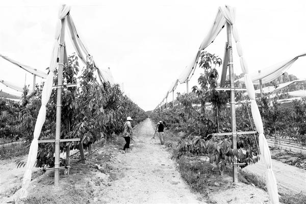 9月3日,工作人员在五莲山—白鹭湾田园综合体园区内的丰沃现代农业示范区内管理果树。
