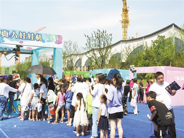 上周末,记者在该项目举办的“国潮玩乐会”现场看到,活动还未开始,营销中心已人声鼎沸,欢笑声此起彼伏,处处洋溢着欢乐的气息。国潮网红打卡,集合当今最潮、最流行元素,来宾在充满艺术感的潮拍装置随便一站,都能拍出极富艺术感又潮酷的影像;福袋寻宝是孩子们最喜欢的项目之一,孩子们仔细地搜索每一个可能藏有宝藏的角落;超刺激的VR滑雪、击剑体验,孩子们瞬间化身为运动员,沉浸在科技的海洋。