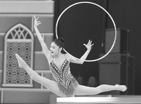 9月16日,中国选手刘佳慧在个人全能预赛圈操项目的比赛中。