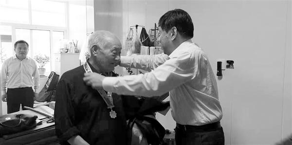 9月25日,市委办公室工作人员前往医院、离休老干部家中走访慰问离休老干部,赞扬他们为新中国成立作出的贡献,转达各级党组织对他们的关怀,并为他们佩戴由中共中央、国务院、中央军委颁发的“庆祝中华人民共和国成立70周年”纪念章。 记者 滕永生 摄