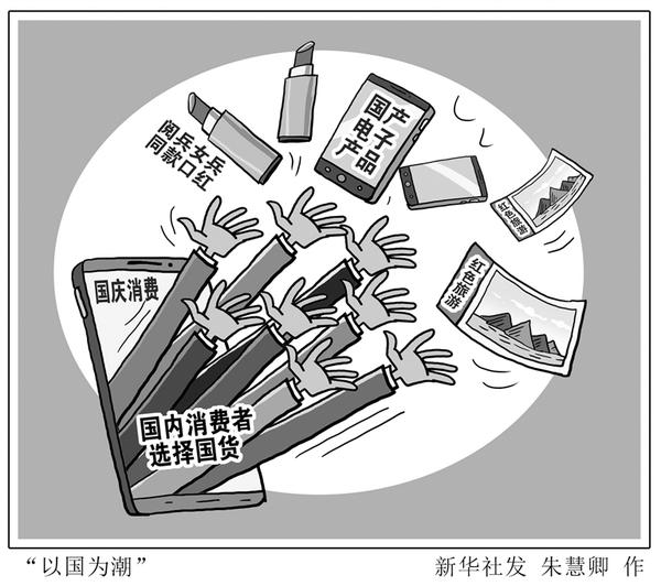 阅兵女兵同款口红热销、国产电子产品抢手、红色旅游飘红……今年国庆节期间,爱国主题文化类消费、国货品牌消费增长迅猛,浓郁的“家”“国”情怀带“红”了整个国庆消费。