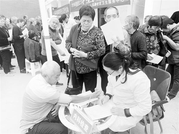 本报讯 10月9日,市中心城区人民路社区卫生服务中心组织医护人员走进该辖区东杨庄社区,开展健康周口行暨“三减三健”义诊宣传活动,为辖区居民进行健康体检。