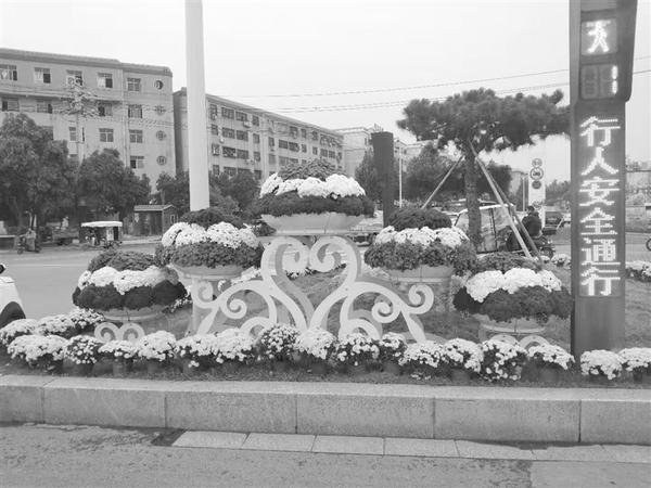 10月14日,记者在中心城区交通大道与大庆路交叉口看到,红色、白色、黄色的鲜花整齐地摆放在交通安全岛上,格外引人注目。“道路交叉口安全岛摆放鲜花既扮靓了城市,也给候灯市民营造了舒适的环境。”一位市民说。