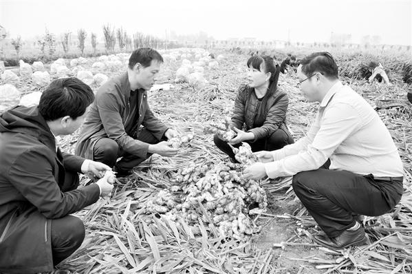 昨日,商水县谭庄镇益民蔬菜种植合作社社员在采收生姜。