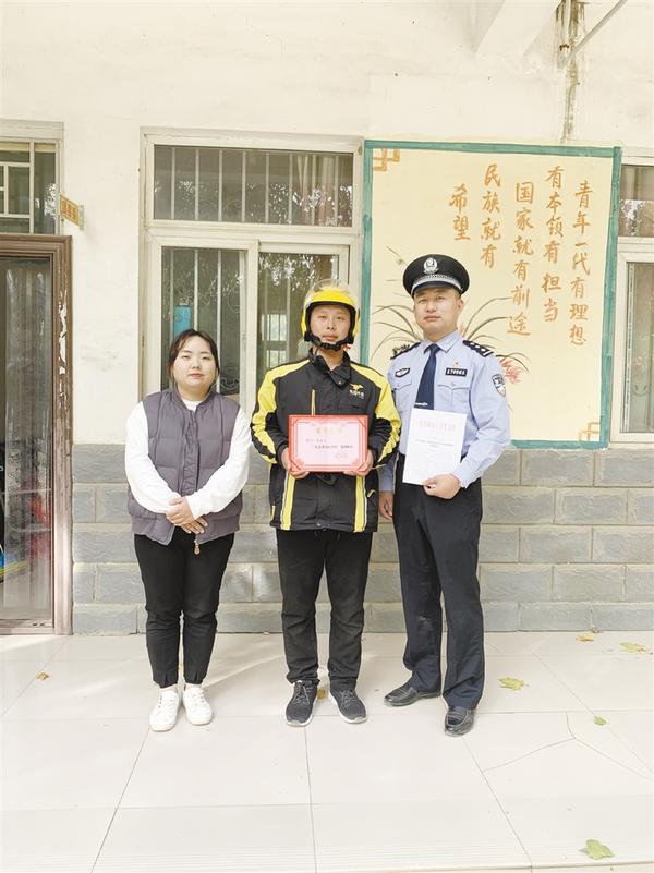 本报讯 “多亏你舍命搭救,你就是俺们家的大恩人!”10月30日上午,被救群众一行4人来到沈丘县一美团外卖站点,为舍命救人的外卖小哥连亚飞送来了锦旗。这几天,淮阳县豆门乡肖庄村的90后青年连亚飞跳河英勇救人的事迹传开后,他“不小心”成了方圆数里的“红人”,10月28日,共青团沈丘县委授予他“见义勇为好青年”荣誉称号。