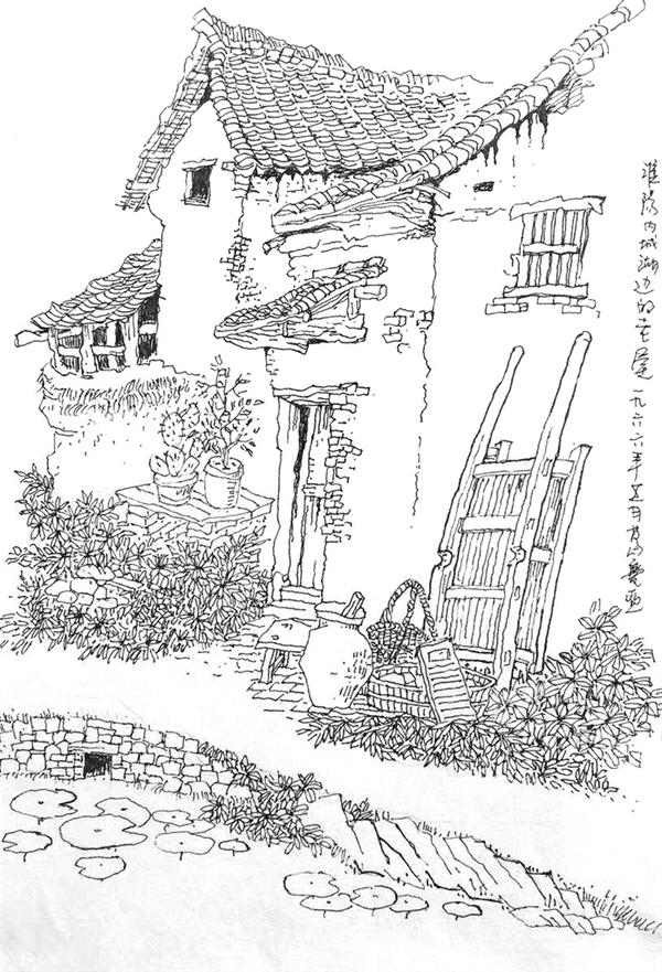 内城湖畔 初晴老屋前,清馨尘不染。 门开闻荷香,碧草绕庭院。 此作品于1966年创作。
