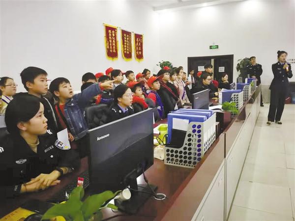 本报讯 “接警员阿姨,你们每天要接多少个报警电话呀?”“我学会拨打110求助电话报警了!”11月16日,近200名周口报业商水小记者走进商水县公安局,参观110指挥中心、监控中心,听民警讲述未成年人遇到各类紧急情况时应如何处理、如何报警,从而培养自我保护意识。