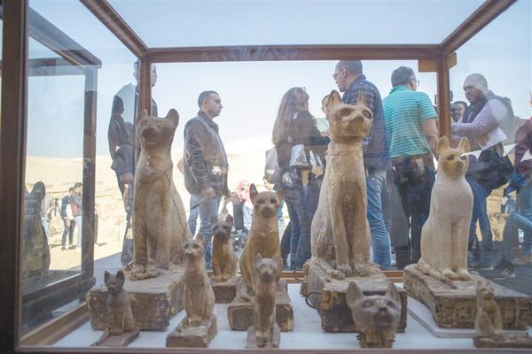 这是11月23日在埃及吉萨省塞加拉地区拍摄的新发现的动物雕像。