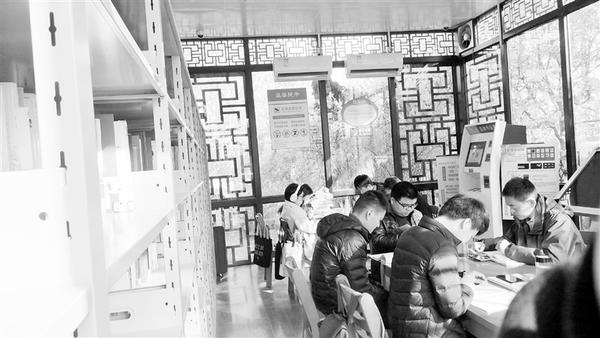 11月28日,在中心城区中原路与庆丰路交叉口附近智慧书屋里,暖意融融,书香四溢,市民有的在专心读书,有的在查阅资料。冬季到来,许多市民选择就近到智慧书屋通过读书来充实自己。 记者 关秋丽 摄