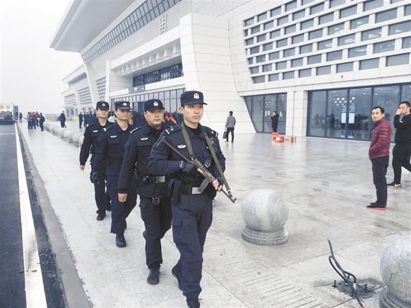 在高铁站口和站前广场处,人们不时能看到特警巡逻的身影(如图)。据现场特警介绍,他们接到任务后,一大早就来到这里,担负现场治安、站内巡逻、处突等任务。