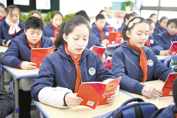 12月4日,合肥市翡翠学校的学生在诵读宪法。