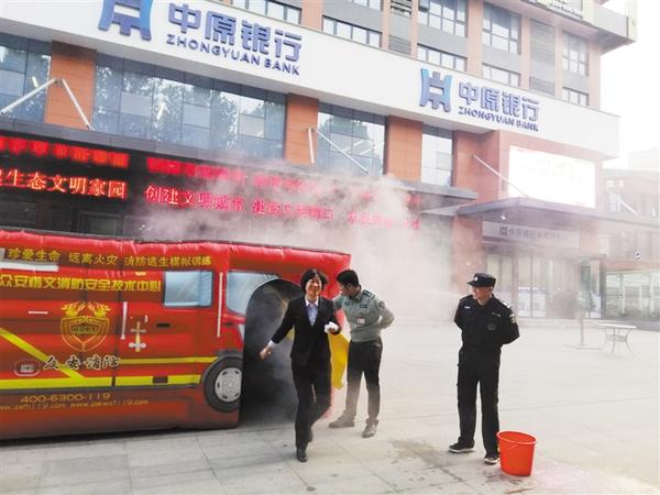 为进一步增强员工消防安全意识,提高员工在真实火灾现场环境下的应急处置能力,日前,中原银行周口分行搭建消防逃生屋模拟火灾现场真实环境,组织分行机关部室员工和各支行负责人、安全员进行火灾逃生应急疏散演练。图为演练现场。通讯员 陈继红 摄