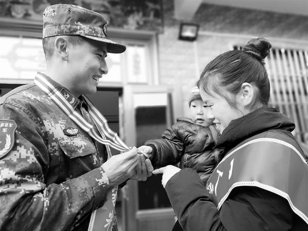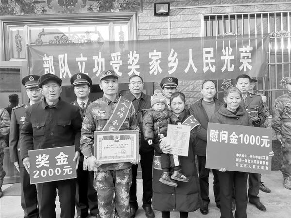 当日下午,市城乡一体化示范区许湾乡关庄村响起一阵锣鼓声,吸引众多村民围观。大红花、红绶带、一身绿军装,原来是火箭军驻军某部士官宋平荣立三等功,和军地领导一起将立功喜报送回家里。
