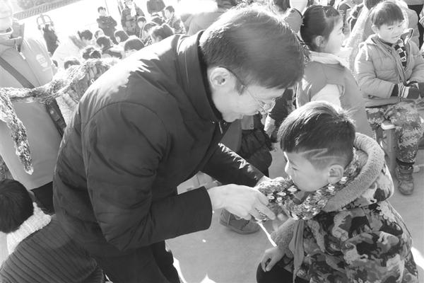 12月27日,周口市妇联联合北斗达教育启动了“第五届赠围巾、送温暖”爱心公益活动。近百名义工教师及学员参与其中,他们为西华县叶埠口乡洼赵小学的孩子们带来了300余条由爱心家长们亲手编织的爱心围巾。活动主办方希望孩子们学会做一个感恩的人,用爱心温暖身边的朋友。图为西华县叶埠口乡洼赵小学的孩子收到爱心围巾。记者 刘华志 通讯员 李超杰 摄