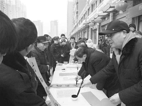 1月13日,民建周口市委组织会内书法家在市经济开发区许寨安置区开展送春联慰问活动,吸引了小区近百名群众。活动中,民建周口市委还为十几户困难群众发放了花生油、大米、面粉等慰问品,受到了小区群众的一致好评。