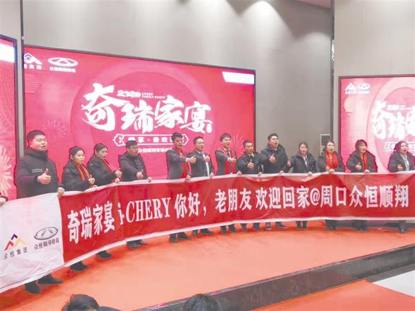 1月11日晚,周口众恒顺翔奇端4S店举行奇瑞家宴,新老客户齐聚一堂,开怀畅谈,共享一段美好而温情的时光。记者 杨运栋 摄