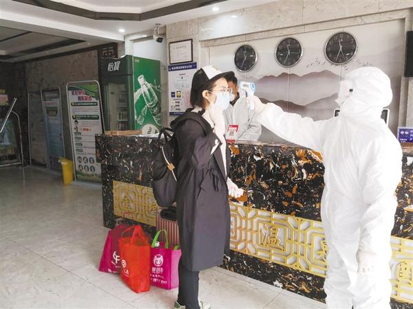 回顾 22天的值勤生活,“虽然艰苦,但依然感动!”霍红梅说,宾馆共入住隔离人员49名,因他们隔离的时间不一致,所以不论白天黑夜,他们对新来的隔离人员都耐心地测量体温、消毒物品、讲解隔离措施、进行心理疏导,忙完后还要整理相关资料,并录入电脑。隔离期间,49名隔离人员无一人被定为确诊病例或疑似病例,医务人员全部安然无恙。
