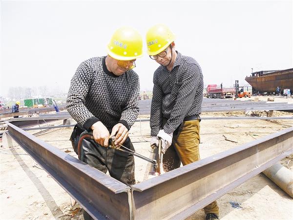 近期,沈丘县统筹疫情防控、复工复产、安全生产“三剑”齐发,为企业提供全方位帮助,使企业尽快步入正常运行轨道,促进地域经济快速恢复。目前,沈丘县规模企业、扶贫车间实现了科学有序复工复产,复工复产率达100%。图为该县一家造船企业内一派繁忙景象,工人正忙着铺设焊接钢舶船骨架。 记者 孙安平 摄
