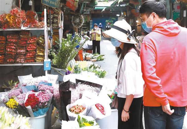 近日,武汉的花卉市场在做好疫情防控的同时,有序恢复市场经营,吸引市民前来选购。