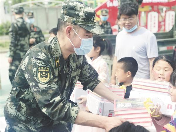 随着武警官兵到来,本来安静的村庄突然变得热闹起来。当日8时许,武警周口支队支队长周志宏一行,来到了付楼村文化广场,为该村贫困户发放生活物资,并为贫困家庭学生送去图书、写字桌等学习用品。同时,他们还为村民提供测量血压、理发等便民服务。