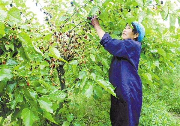桑葚被称为“民间圣果”,是当下人们喜爱的一种水果,可以食用、酿酒、加工桑葚食品、制作桑叶茶等,富含多种维生素及微量元素,有补血滋阴、生津止渴、补肝益肾、调节睡眠等多种功效,被医学界誉为“21世纪的最佳保健品”。