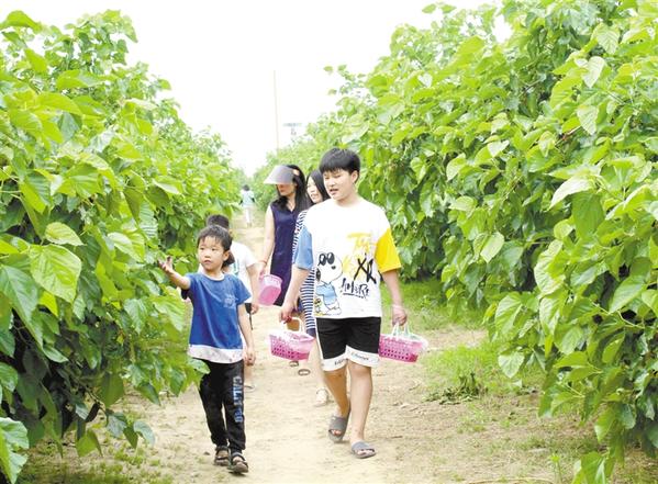 “这里的桑葚果大、多汁,酸甜可口,饿了园里还有风味小吃……”5月16日,专程前来采摘桑葚的游客郭红说。