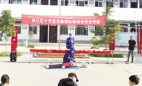 本报讯 为进一步做好防溺水安全教育和管理工作,确保学生生命安全,增强全校师生防溺水安全意识,提高其预防自救能力,近日,周口三中联合蓝天救援队举行了防溺水安全讲座,筑牢防溺水安全防线,携手共建平安校园。