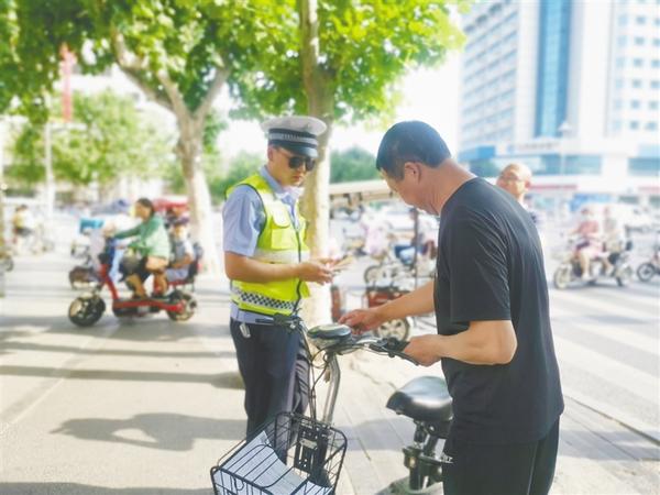 当日16时许,在中心城区七一路与中州大道交叉口附近,市公安局交通管理支队直属二大队民警在大队长赵其学的带领下开展集中执勤。一位市民驾驶摩托车由南向北行驶,驾驶员佩戴有安全头盔,而坐在后座的乘坐人却没有佩戴。交警把他们拦下后,他们表示,知道“一盔一带”的重要性,但是认为只要驾驶员佩戴安全头盔就可以了,没想到乘坐人也需要佩戴。民警在查看其驾驶证后,按照相关法律法规对其处以20元罚款。