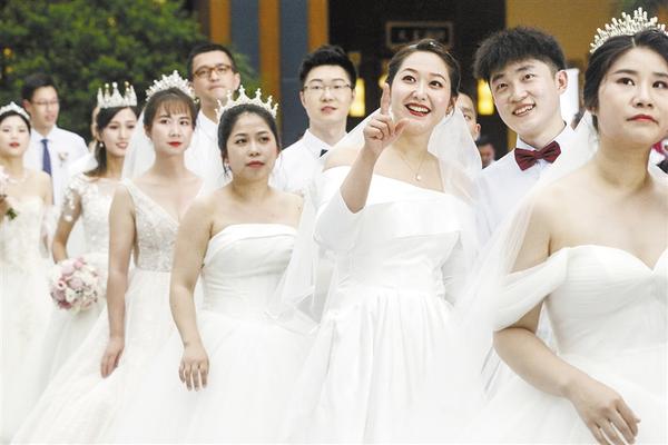6月6日,在海南博鳌乐城国际医疗旅游先行区,新人准备参加集体婚礼。