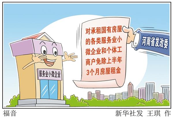 记者从河南省发改委获悉,河南省决定对承租国有房屋的各类服务业小微企业和个体工商户免除上半年3个月房屋租金。新华社发 王琪 作