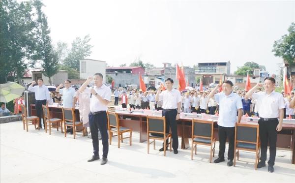 ——参会全体党员唱响国歌,讴歌党的辉煌成就,奋力实现高质量发展新突破,以优异成绩向中国共产党成立99周年献礼。由镇长马克强领誓,参会全体党员面对鲜红党旗,胸前佩戴党徽,高高举起右手,再次向党作出庄严承诺,重温入党誓词,声声入耳,句句入心,更加坚定入党初心。