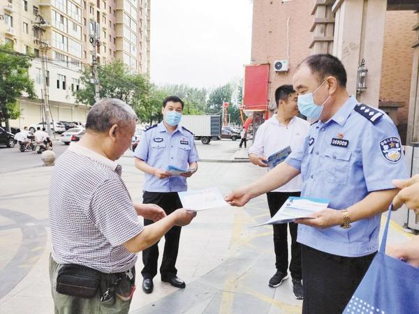 6月26日下午,荷花路分局局长张国营与民警一同开展“七进”反电信网络诈骗宣传活动。每到一处,张国营都热情耐心的向群众讲解防电信网络诈骗知识及诈骗类型。与此同时,他还根据电信网络诈骗的特点,将自己总结的“不听、不信、不转账、不点、不扫、不上当”的“六不”防电信网络诈骗小妙招倾囊相授。