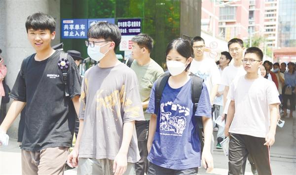 7月7日上午,高考首场考试于11时30分结束,周口二高考点的考生陆续走出考场时露出笑容,自信满满。 记者 孙安平 摄