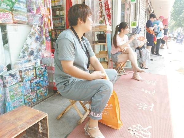 7月7日上午,记者在周口市第十九初级中学门前,见到了在考点外焦急等待的潘小琴。她正坐在阴凉处乘凉,不时扇动手中的扇子,眼神满是期待。