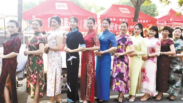 7月7日上午,在市第一高级中学考点外,周口市旗袍协会的旗袍爱心公益志愿者身着绚丽的旗袍,在考点外为高考学子加油。