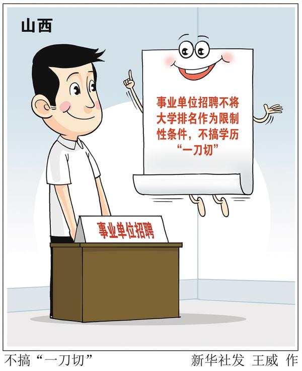 记者7月8日从山西省人力资源和社会保障厅获悉,为优化全省创新生态,山西省进一步扩大事业单位用人自主权,事业单位招聘急需紧缺专业人才可通过直接考核方式进行,不将大学排名作为限制性条件,不搞学历“一刀切”。新华社发 王威 作