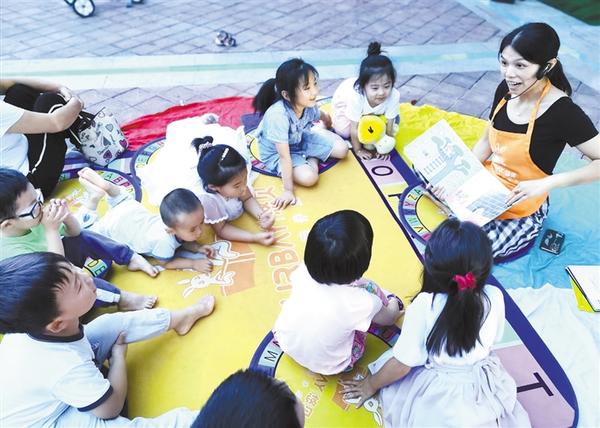 7月18日晚,在中心城区建业森林半岛小区广场,一群小朋友围坐在公益故事领读者的周围,全神贯注地听故事。暑假以来,每天傍晚,悠贝公益故事领读者都会在这里和小朋友们互动,读绘本故事。家长们都说,这样的故事会很好,可以让小朋友爱上读书,养成良好的读书习惯。