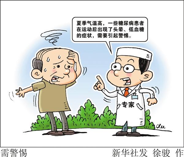 夏季,糖尿病患者如何科学运动?专家指出,炎热的天气给糖尿病患者运动带来了新的考验,有一些糖尿病患者在运动后出现了头晕、低血糖的症状,需要引起警惕。新华社发 徐骏 作