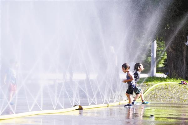 7月28日,在奥地利维也纳,儿童在一处广场戏水。