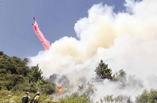 8月2日,灭火飞机在美国加利福尼亚州河滨县发生山火的地区喷洒阻燃剂。