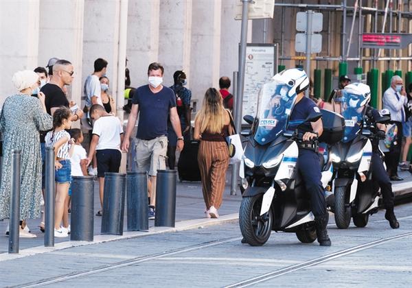 由于疫情反弹,法国南部海滨城市尼斯自3日起强制民众在部分室外公共场所佩戴口罩。