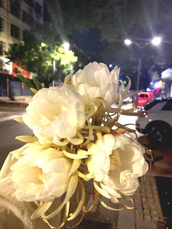 当晚赏花过后,苗天才让大家摘几朵昙花再走,他说:“你们几位同志大老远来看昙花,摘几朵带回去吧,我这儿还有好几盆小株的,你们喜欢的话也可以带走。”