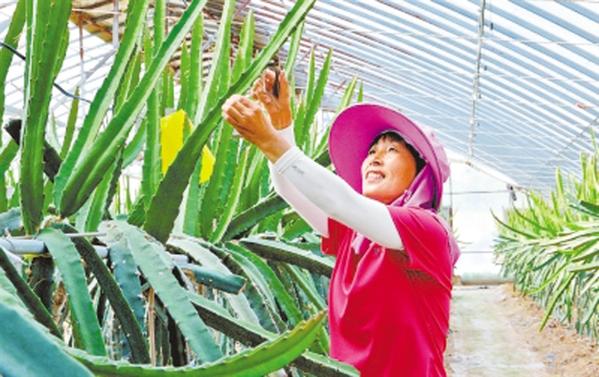 “一期我们建设了3万平方米的火龙果大棚,去年收入30万元,带动15户贫困户脱贫。”胡小刚说。