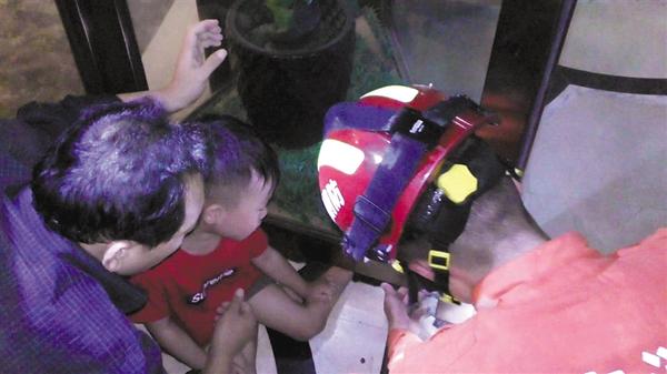 到达现场后,消防员立即开始进行救援。3分钟后,男孩的左脚被成功取出。记者 王凯 摄