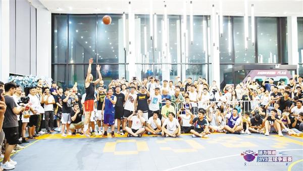 8月9日晚,周口信博领克体验中心在店内举行了“领克杯”活力领潮3V3篮球争霸赛。中国“扣篮帝”陈登星莅临现场并表演了扣篮。图为活动现场。记者 侯国防 摄