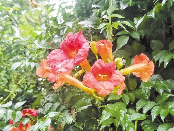 既是自然的生长,又是自然的画作;既是攀缘,也是超越的本能;既是依附,也是向上的谦逊;既有花开的热闹,又有花下的静谧……凌霄花以多姿多彩的生长状态和精神意象,展示着它的另一种绚烂。