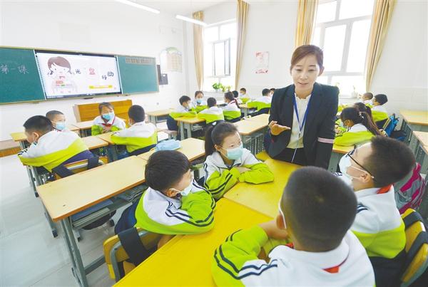 8月31日,科尔沁右翼前旗第二小学六年级三班学生和教师在开学第一课上讨论如何节约粮食。正值开学季,当日,在内蒙古兴安盟科尔沁右翼前旗第二小学,多个班级围绕“节约粮食”开展“开学第一课”,培养孩子们倡导节约、反对浪费的习惯。 新华社记者 徐钦 摄