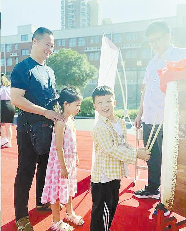 9月5日上午,周口莲花路奔腾小学一年级新生在家长陪伴下齐聚校园,参加“我是小学生"新生入学仪式。伴随着少先队员们隆重的迎新仪式,端正衣冠、朱砂启智、启蒙描红、击鼓鸣志(如图)……一道道传统礼仪,点亮孩子童年新纪元。 通讯员 奔腾 摄