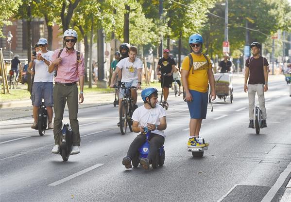 这是9月13日在奥地利维也纳拍摄的电动出行大巡游活动中的电动非机动车。