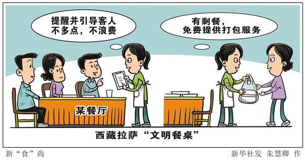 “张贴文明用餐行动标语;建议企业在菜单上标明菜品分量;积极推行公筷公勺制……”为提倡“厉行节约、反对浪费”的社会风尚,西藏自治区烹饪餐饮饭店业协会近日发出“坚决制止餐饮浪费行为”倡议书。记者走访了解到,许多餐饮企业第一时间响应倡议,采取有效措施,将制止餐饮浪费行为作为餐饮业常态化工作,力戒“舌尖剩宴”。